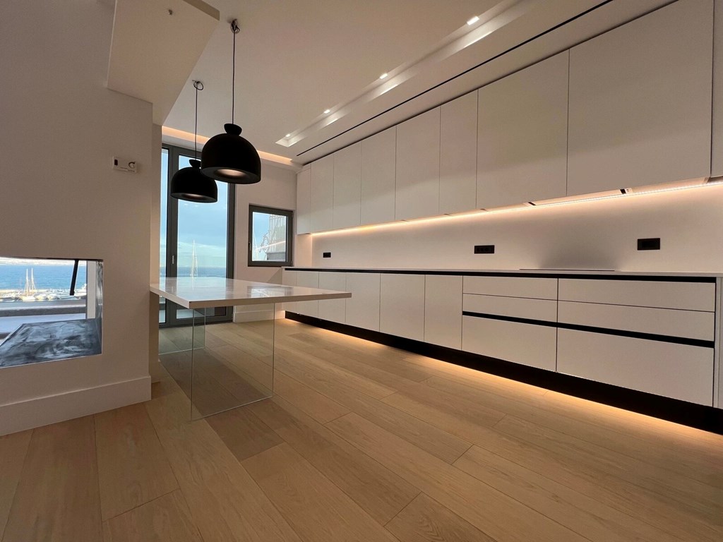 Квартира має кутове розташування. У об'єкта передбачені сонячні батареї для нагріву води, камін, кондиціонер, тенти, опалення. У будівлі розташований ліфт. До нерухомості відноситься місце для паркування, гараж. З вікон відкривається чудовий вид на море.