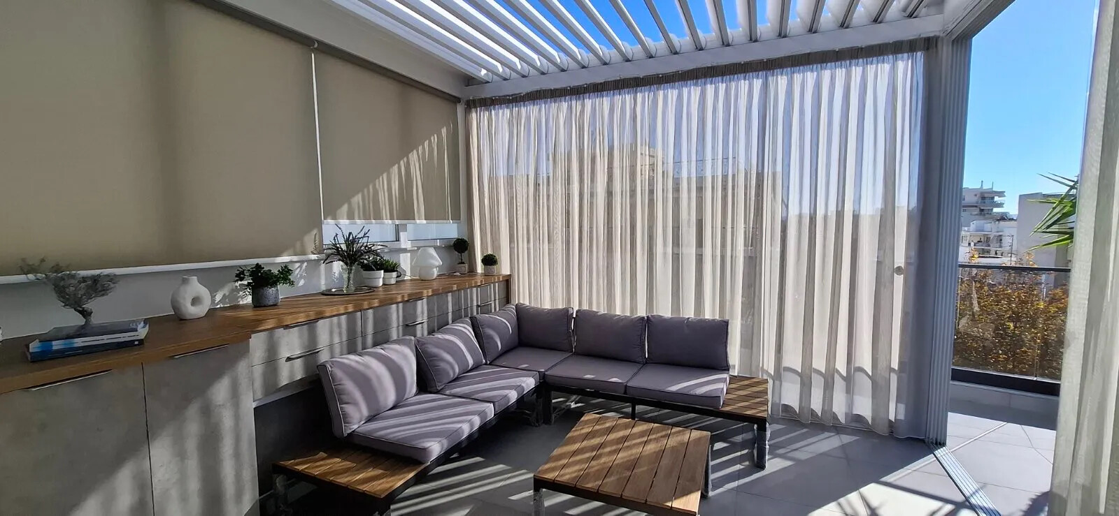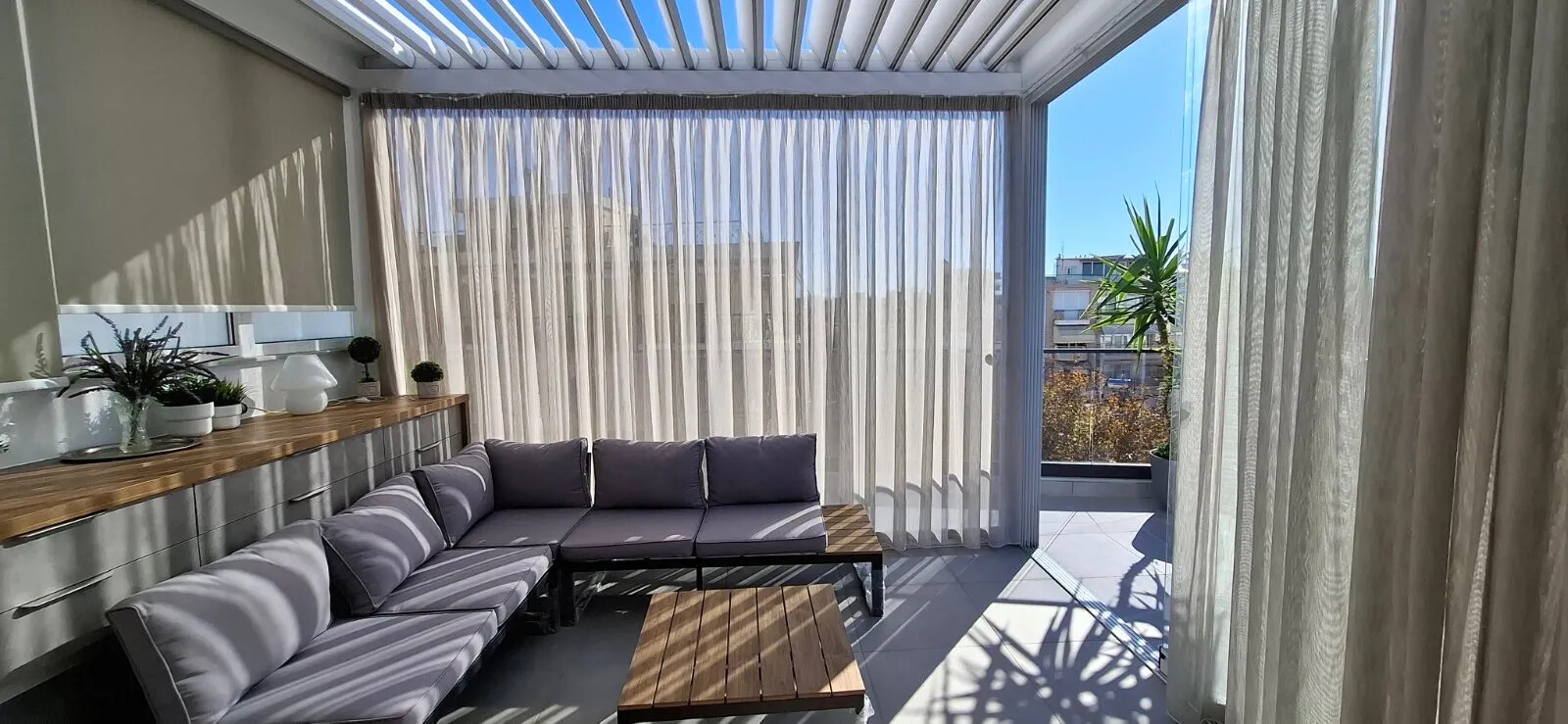 У об'єкта передбачені сонячні батареї для нагріву води, кондиціонер, тенти, опалення. Нерухомість продається з меблями. У будівлі розташований ліфт. У об'єкта встановлена сигналізація. З вікон відкривається чудовий вид на море, на гори, на місто.