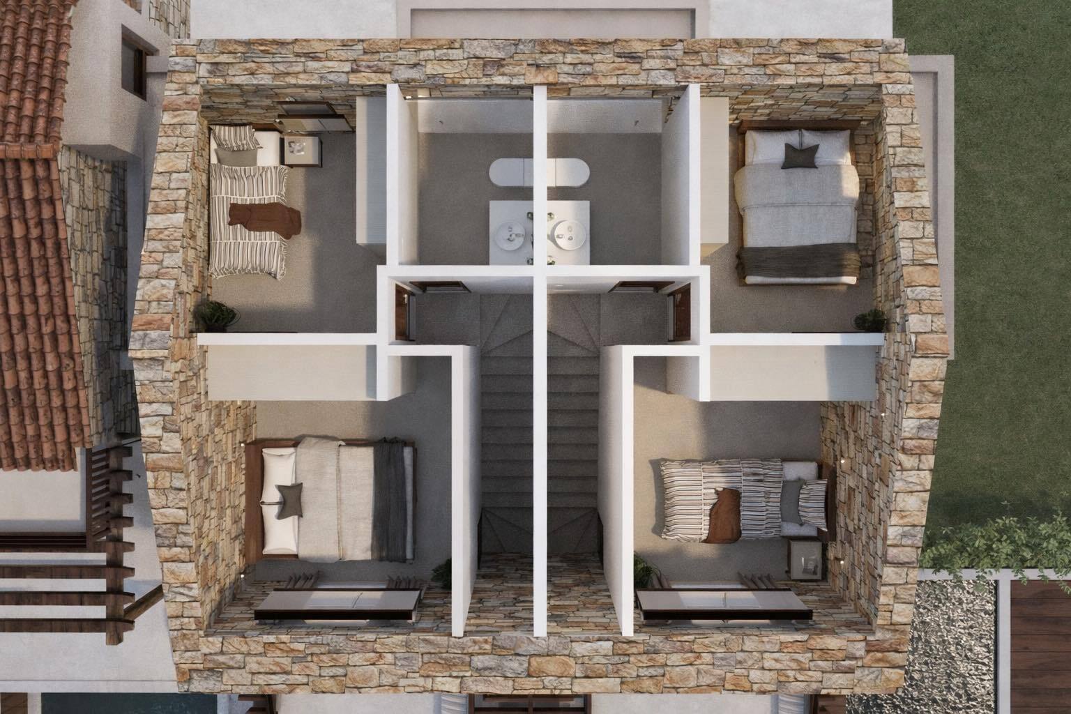 Продається на стадії будівництва. таунхаус площею 65 кв.м на півострові Кассандра, регіону Халкідіки.Таyнхаус розташований на 2 рівнях.